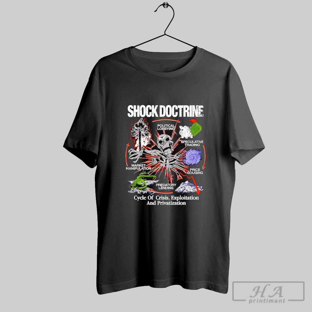Shock Doctrine Cycle Of Crisis Exploitation And Privatization Skeleton Shirt