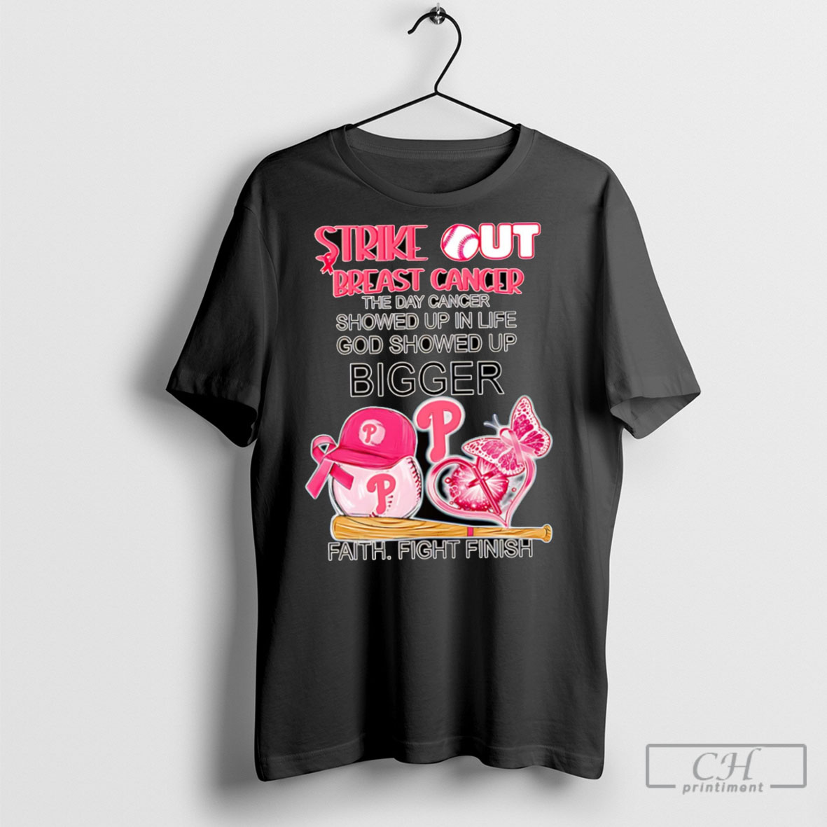 Strike Out Breast Cancer The Day Cancer Showed Up In Life God Showed Up Bigger Philadelphia Phillies Tee Shirt Sweatshirt