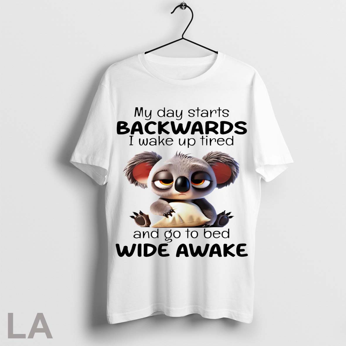 Top Koala My Day Starts Backwards I Wake Up Tired And Go To Bed Wide Awake T Shirt Sweatshirt Hoodie Shirt