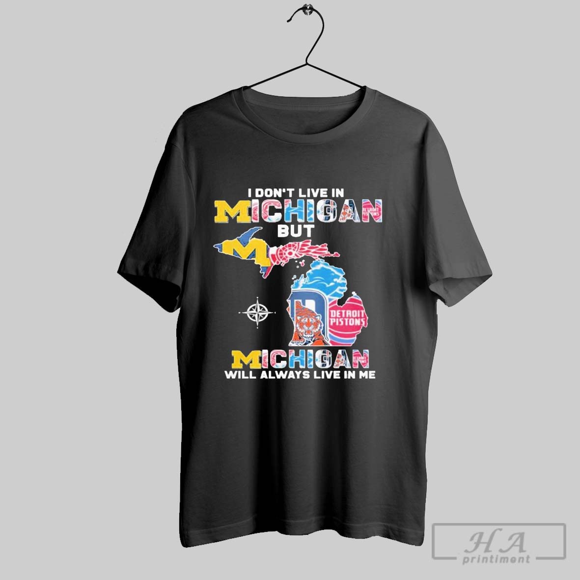 Original I Dont Live In Michigan But Michigan Will Always Live In Me Logo Shirt